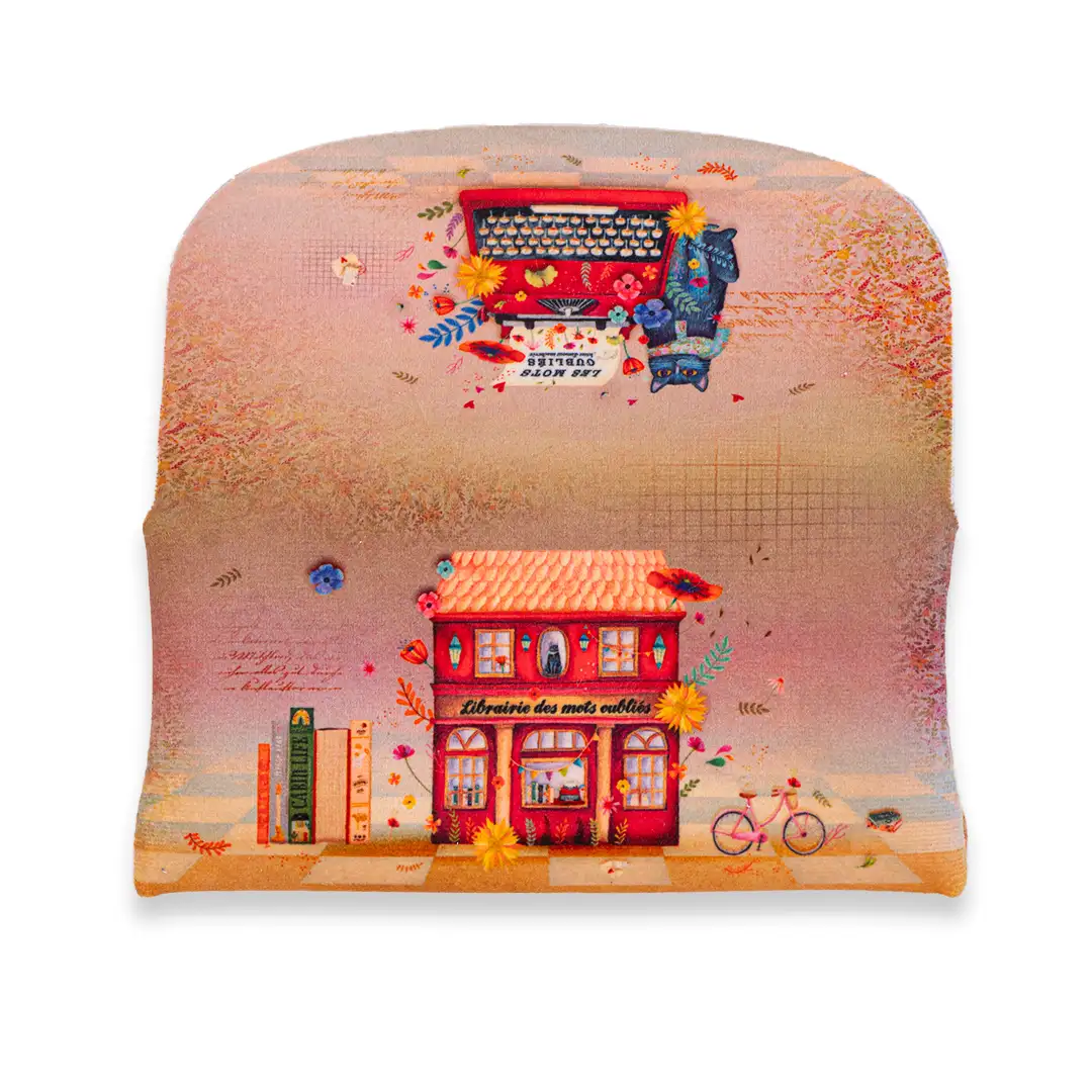 Au cœur d’une librairie imaginaire, l’écrivain solitaire contemple la page blanche, son chat bleu lové à ses côtés. Autour d’eux, les livres murmurent leurs secrets, suspendus entre silence et rêve. Chaque détail du motif évoque la quête d’inspiration, la beauté des histoires inachevées et la magie des mots oubliés.